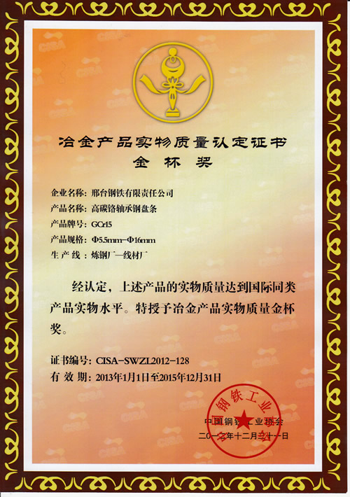 高碳鉻軸承鋼盤條GCr15φ5.5~16mm獲冶金產(chǎn)品實(shí)物質(zhì)量金杯獎