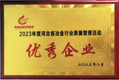 2023年8月,邢鋼被評(píng)為“2023年度河北省冶金行業(yè)質(zhì)量管理活動(dòng)優(yōu)秀企業(yè)”。