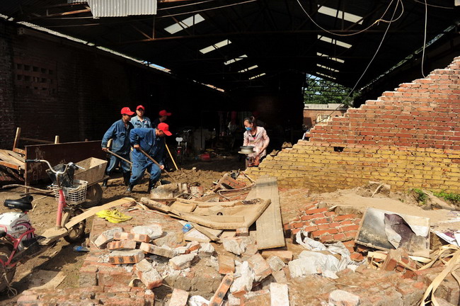 邢鋼志愿者奮戰(zhàn)在救災(zāi)清淤第一線