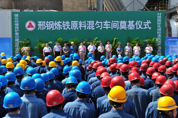 6月9日上午,邢鋼在煉鐵廠原料混勻車間舉行了全封閉式料場奠基儀式?;靹蛄蠄鋈忾]工程是邢鋼2015年實施的14項環(huán)境深度美化治理重點項目之一,邢鋼還將進(jìn)一步實施噴吹煤全封閉料倉、無組織揚(yáng)塵面源封閉、廠容廠貌深度治理等一系列環(huán)保項目。