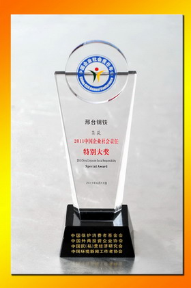 2011年6月17日,由中國外商投資企業(yè)協(xié)會、中國保護消費者基金會、中國民(私)營經(jīng)濟研究會、中國環(huán)境新聞工作者協(xié)會和北京市石景山區(qū)人民政府聯(lián)合主辦的“第三屆企業(yè)社會責(zé)任年會”在北京舉行。本次年會主題為“企業(yè)的責(zé)任戰(zhàn)略與創(chuàng)新”。年會上隆重揭曉“2011(第三屆)中國企業(yè)社會責(zé)任榜單”。邢鋼公司經(jīng)過嚴格審核,入選“中國企業(yè)社會責(zé)任榜100強”,并獲“2011中國企業(yè)社會責(zé)任特別大獎”,授予邢鋼董事長袁世臻 “中國履行社會責(zé)任優(yōu)秀企業(yè)家”稱號。