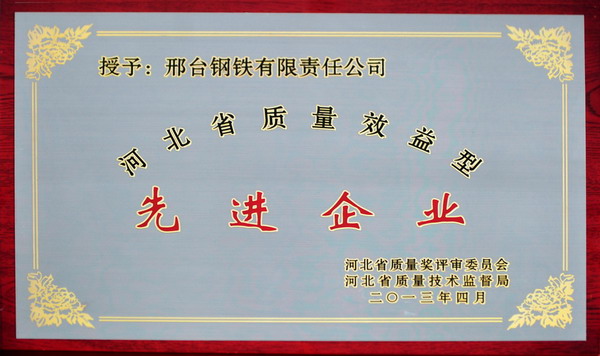 邢鋼線材(盤條)獲省名牌產品 公司獲省質量效益型先進企業(yè)