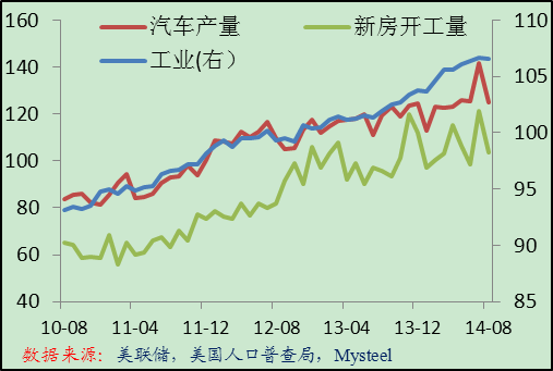 9月份美國粗鋼產量開始下降,結合進口量數據,可以大致判斷出市場需求正在環(huán)比下降,與工業(yè)、汽車產量和新房開工量數據吻合。