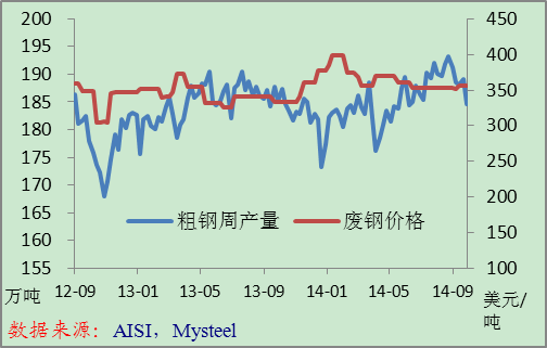 美國粗鋼產量和1號重廢價格 美國鋼材進口量