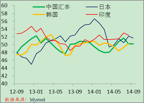 8月份亞洲粗鋼日均產量達到298.4噸,環(huán)比增長0.1%,同比增長1.7%,韓國和印度產量增長明顯。根據中鋼協的統計,9月份中國重點鋼企粗鋼日均產量環(huán)比小幅下降,而Mysteel調查的9月份全國鋼鐵PMI產出指數也有所下降。預計9月份亞洲粗鋼日均產量將環(huán)比下降。