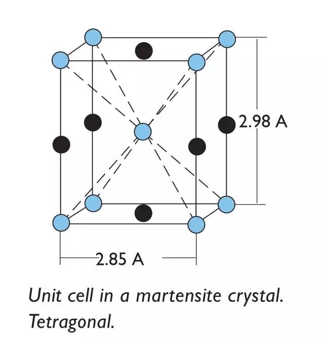如果鋼在硬化過程中足夠快速地淬火,則碳原子沒有時間自己重新定位以允許鐵素體從奧氏體中轉(zhuǎn)變,例如在退火中。相反,它們被固定在某個位置上,使它們真正沒有足夠空間被容納,結(jié)果是導(dǎo)致更高的微應(yīng)力促使硬度增加。