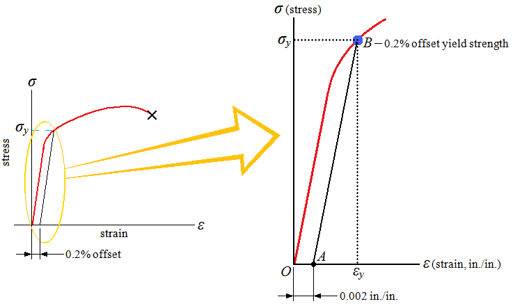 常用的金屬一般為多晶體金屬,因此工程實(shí)際金屬起始塑性變形具有非同時(shí)性特征。在拉伸曲線上具體反映就是沒有明顯的屈服點(diǎn)。那么,如何界定工程實(shí)際金屬發(fā)生了塑性變形呢?殘留塑性變形量就成為重要的依據(jù),人們通常人為地把一定殘留塑性變形量時(shí)工程金屬對(duì)應(yīng)的抗力作為屈服強(qiáng)度,也稱為條件屈服強(qiáng)度。這很好理解,沒有明顯的塑性屈服點(diǎn),就沒有明顯的屈服強(qiáng)度,要想知道實(shí)際金屬的屈服強(qiáng)度就需要一個(gè)判定條件,因此就有了條件屈服強(qiáng)度。對(duì)于不同的金屬構(gòu)件,其條件屈服強(qiáng)度對(duì)應(yīng)的殘留變形量不同。對(duì)于一些苛刻的金屬構(gòu)件,其殘留變形量規(guī)定應(yīng)較小,而普通金屬構(gòu)件條件屈服時(shí)對(duì)應(yīng)的殘留變形量則較大。常用的殘留變形量為0.01%,0.05%, 0.1%,0.2%,0.5%和1.0%等。