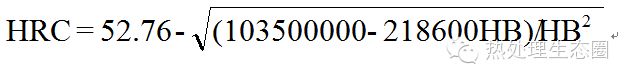 本公式與國家標(biāo)準(zhǔn)實驗換算值對照,換算式計算結(jié)果與標(biāo)準(zhǔn)實驗值之誤差為?0.1HRC。