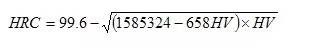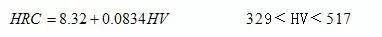此公式用我國公布的黑色金屬硬度標(biāo)準(zhǔn)數(shù)據(jù)進(jìn)行換算,其HRC誤差基本上在?0.4HRC 范圍內(nèi),其最大誤差也僅士0.9HRC,計算的HV誤差最大為?15HV。