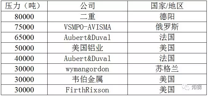 世界主要大型鍛壓設(shè)備分布: