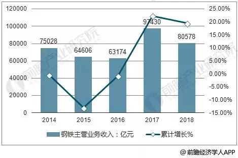 據(jù)前瞻產(chǎn)業(yè)研究院發(fā)布的《中國(guó)鋼鐵行業(yè)發(fā)展前景與投資戰(zhàn)略規(guī)劃分析報(bào)告》指出,2018上半年中國(guó)鋼鐵行業(yè)主營(yíng)業(yè)務(wù)收入達(dá)到30525億元,累計(jì)增長(zhǎng)15.8%?;仡?012-2017年鋼鐵行業(yè)營(yíng)業(yè)收入情況:近六年來(lái),我國(guó)鋼行業(yè)營(yíng)業(yè)收入較為穩(wěn)定,2015年以來(lái)累計(jì)增長(zhǎng)率逐漸回暖。中國(guó)鋼鐵行業(yè)將繼續(xù)保持穩(wěn)中有長(zhǎng)趨勢(shì),預(yù)計(jì)2018年中國(guó)鋼鐵行業(yè)營(yíng)收將突破80000億元。