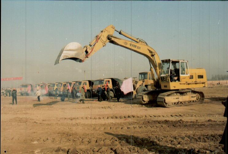 圖為1995年破土動(dòng)工建設(shè)的場(chǎng)景,鞭炮的硝煙尚未消散,挖掘機(jī)抬起挖斗正要挖下第一鏟,運(yùn)輸車整裝待發(fā),“煉鋼”來了!