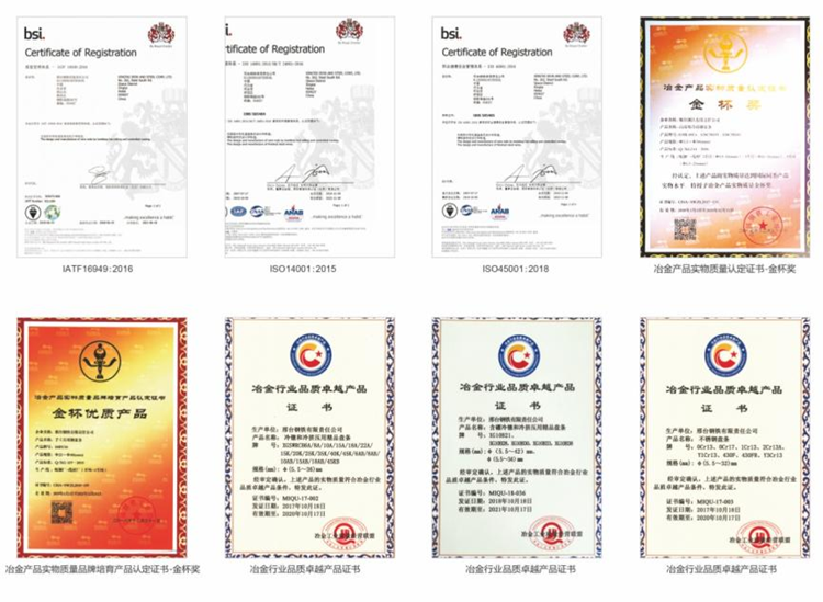 1999年邢鋼開始推行質(zhì)量管理體系,成為最早一批通GB/T19000族標(biāo)準(zhǔn)過認(rèn)證的鋼企之一。2006年,作為全國(guó)首批鋼鐵企業(yè),邢鋼全流程通過了英標(biāo)認(rèn)證公司TS16949汽車行業(yè)質(zhì)量管理體系。產(chǎn)品研發(fā)也是芝麻開花節(jié)節(jié)高,通過創(chuàng)新研發(fā)模式相繼開發(fā)了汽車用鋼、鐵路用鋼,高強(qiáng)橋梁用鋼,耐候鋼、重熔鋼等產(chǎn)品,涵蓋冷鐓鋼、彈簧鋼、軸承鋼、純鐵、預(yù)應(yīng)力鋼、易切削鋼、工模具鋼、耐候鋼等十八大系列。如今的邢鋼已經(jīng)通過EMS,OHSMS等9個(gè)體系認(rèn)證!