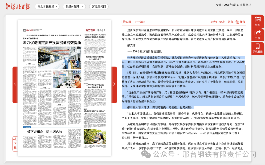 《河北日?qǐng)?bào)》關(guān)注邢鋼轉(zhuǎn)型升級(jí)項(xiàng)目進(jìn)展最新報(bào)道